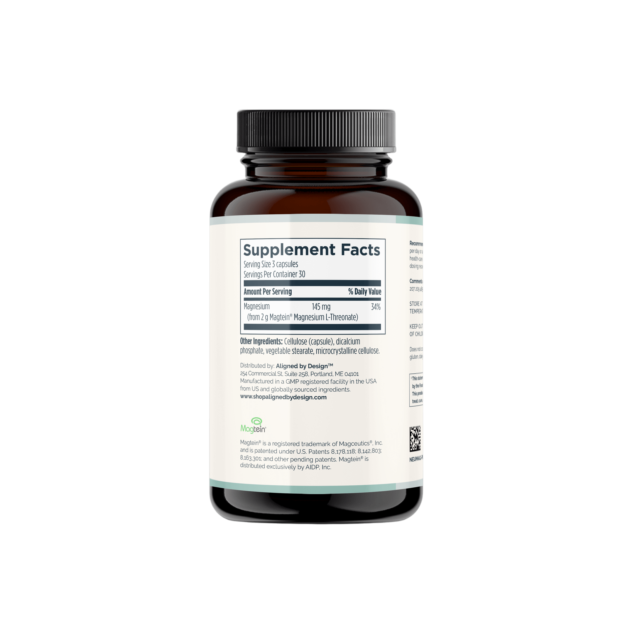• NeuroAlign Magfeatures the patented form of magnesium known asMagtein® (magnesium L-threonate), the most researched form of magnesium for its superior brain bioavailability and clinically demonstrated ability to cross the blood-brain barrier. Each serving delivers 145 mg of chelated magnesium from 2 g of Magtein® to support brain health, memory, and restful sleep.