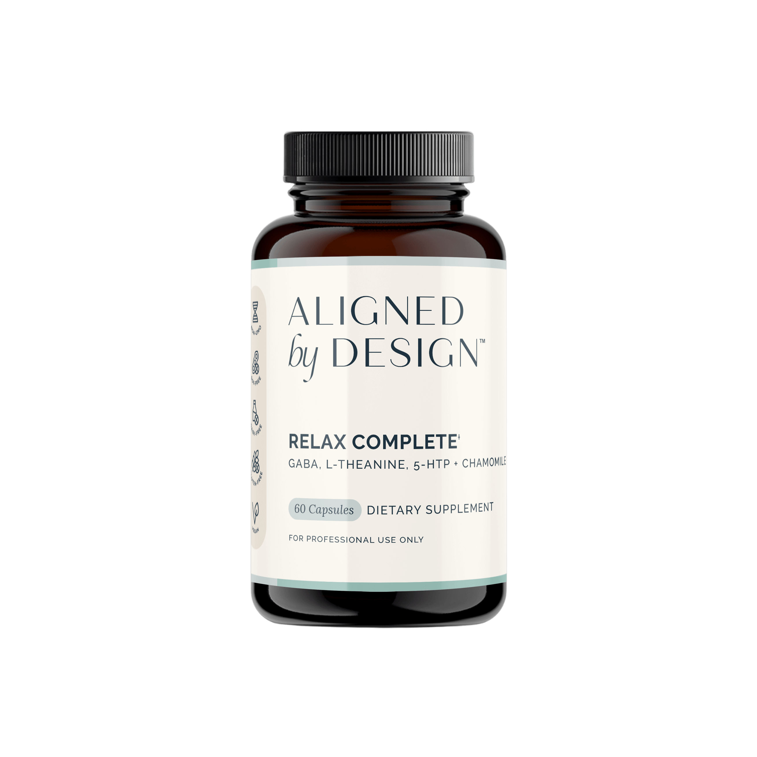 Relax Complete is a unique formula designed to promote the activity of GABA and serotonin, which may help to support a healthy mood, reduce cravings, and support feelings of calm, satiety, and satisfaction. Relax Complete contains PharmaGABA®, a form of GABA naturally manufactured via a fermentation process, which is considered more effective than chemically produced synthetic forms. It also contains l-theanine, 5-HTP, and taurine to support the production of neurotransmitters as well as inositol and B vitamins for the metabolism of serotonin.