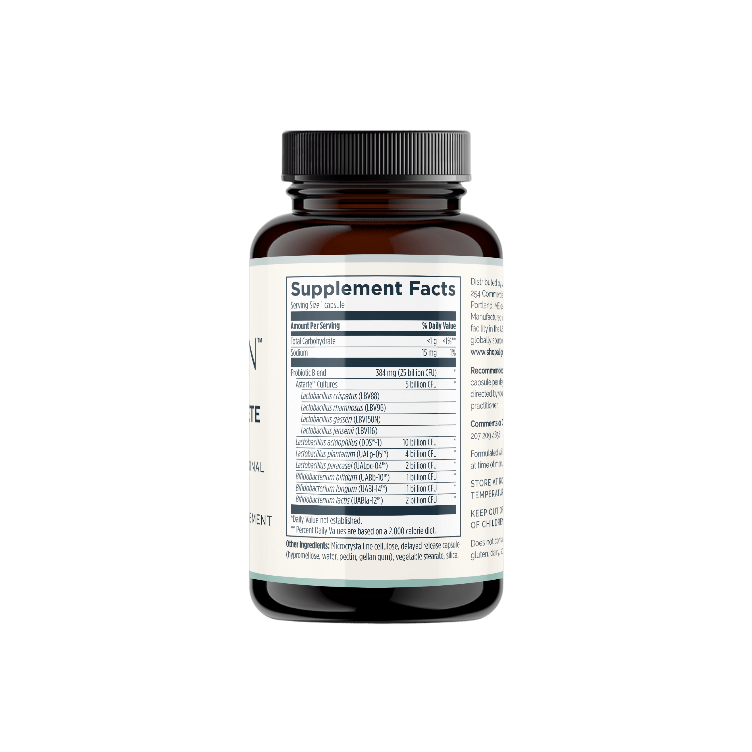 This advanced formula includes ASTARTE™, a proprietary blend of four strains naturally found in a healthy vaginal microbiome, to support normal pH, tissue integrity, and balanced microbial populations. It also features Lactobacillus acidophilus DDS®-1, a patented and well-researched strain shown to promote GI motility, digestion, and immune response. Together, these strains work synergistically to promote harmony between the vaginal and gut ecosystems—foundations for hormone balance, immune resilience, and mood stability.